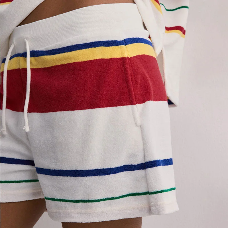 Huili Towel Fabric Stripe Long Sleeve Polo T-shirt & Shorts Sportswear Custom logo Loungewear Two Piece Pajamas for Women Set